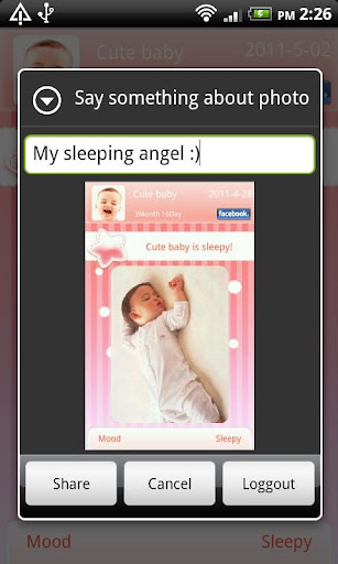2. Share with friends : Share interesting event on Facebook or other social network, post a cute picture or share your baby's current mood.