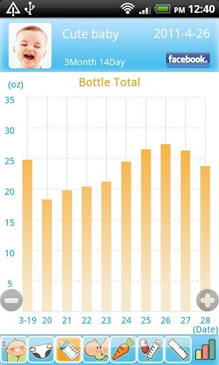 3. Chart : Baby Daychart provide clear chart to help parents to understand baby's daily schedule. Also parents can define custom item to record and create chart.