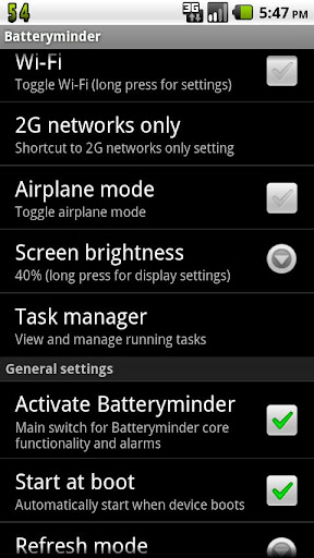 - 10% increments: due to some manufacturers/devices (e.g. Motorola Droid) only reporting battery status information in 10% increments, Batteryminder will not be able to display more accurate battery level information in the status bar icon and similar.