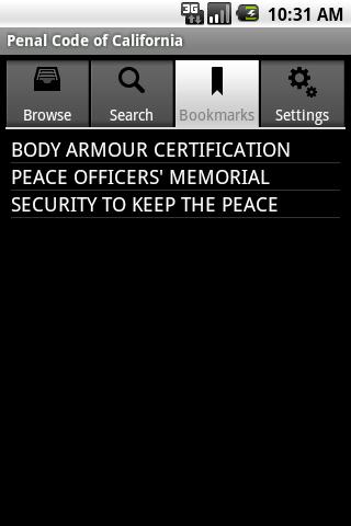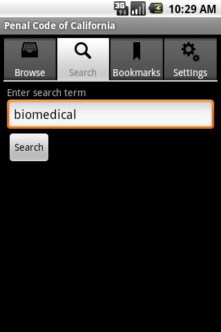 California Penal Code for Android is the complete California Penal Code in your Android smartphone. It's available in an easily browsable and searchable format, and is suitable for law students or anyone working in law enforcement or in criminal law who doesn't always have access to the internet or to the printed law books.