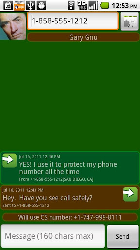 If a person that you have called using Call-Safely, sends a text message (SMS) to the number they think you called from, that text will be sent to your account. It will not show up in your normal text messaging application. Instead, they stay safely within the Call-Safely app. If you running Android 2.2 or higher, you will get a push notifiation. You can also turn on SMS to Email.