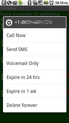 Press the "Dialed" button to see a list of numbers you have called using Call-Safely. Touch any of those numbers to change how long calls from that number are forwarded to you, send them directly to voicemail, or just delete them so they can no longer contact you.