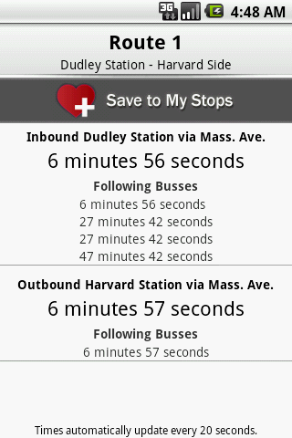No more waiting, no more missing your Bus or T with these real-time predictions.