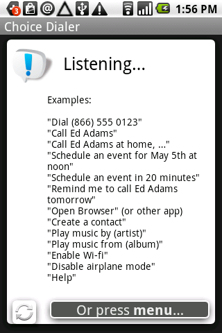 3. Press "Menu" as the app listens for Help and Settings panels. Not all features are enabled by default.
