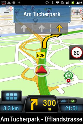 3D und 2D Kartenansichten – Routenstatus-Anzeige - Umleitungsfunktion – In-App Musiksteuerung - Favoriten und letzte Ziele – persönliche Routenoptionen – Vermeiden von gebührenpflichtigen Straßen – Twitter und Facebook Statusupdates – örtliche Wetterinformationen - und vieles mehr!
