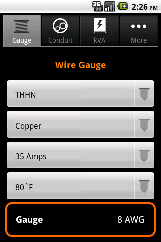 A professional reference tool for electricians and electrical engineers. This is the most complete app for professionals looking for reliable numbers and an easy to use interface. Based on NEC 2008 code.