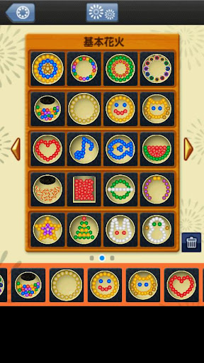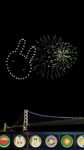 Berühren Sie ein Feuerwerkskörper-Icon am unteren Ende des Bilschirms, um das entsprechende Feuerwerk zu zünden. Durch ein Scrollen nach links oder rechts können Sie verschiedene Feuerwerkskörper auswählen.