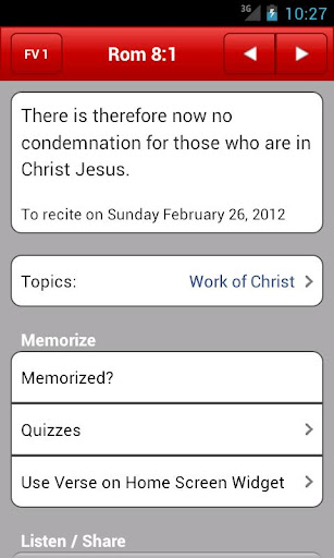 • WIDGET to display any verse on the Home Screen so the verse is front of you every time you use your phone / tablet.