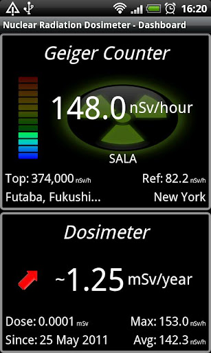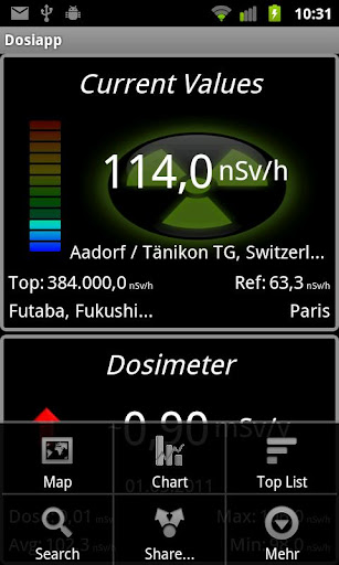 NUCLEAR RADIATION DOSIMETER lässt Sie direkt auf über 5‘000 Messstellen weltweit zugreifen, zeigt die Top 25 Strahlenquellen und die radioaktive Strahlung eines von Ihnen bestimmten Referenzortes an. Sie bestimmen Ihre maximale radioaktive Jahresbelastung und NUCLEAR RADIATION DOSIMETER schlägt bereits jetzt Alarm, wenn sie diese in den kommenden 12 Monaten überschreiten sollten.
