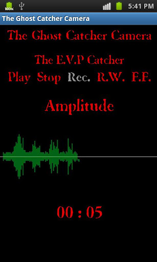 Other features include a digital recorder called "The E.V.P. Catcher" which includes an amplitude meter that allows you to be able to view any sound fluctuation during an E.V.P. or silence session. The recorder has the ability to rewind and fast forward as well. Each tap of the button will either go back or ahead 3 seconds at a time in order to pinpoint the exact location and time of the sound fluctuation. There is a timer at the bottom of the screen that lasts the entire session and an option to save the recording session is also available.