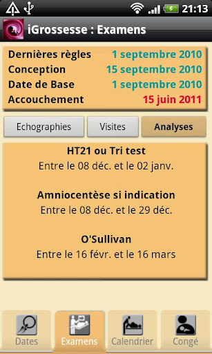 Calendrier des événements de la grossesse :