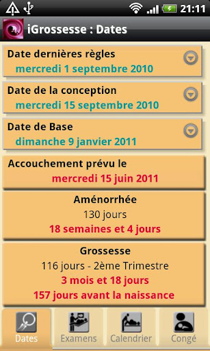 - Calcul de l'avancement de la grossesse.