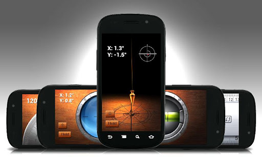 - Nach der Kalibrierung können Lot, Richtwaage und Wasserwaage als Neigungsmesser benutzt werden; indem die Winkel auf dem Bildschirm abgelesen werden.