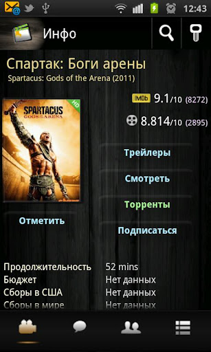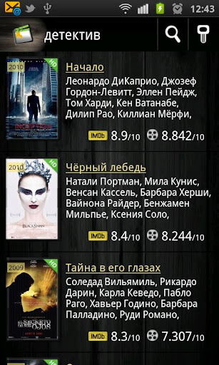 KinoDroid - Android-client for the service kinobaza.tv. Sorry, only russian language is supported.