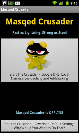 The Masqed Crusader is a Network Optimization Tool for ROOT USERS ONLY. It increases web browsing speed and privacy. It is the only app of its kind on the Android Market!