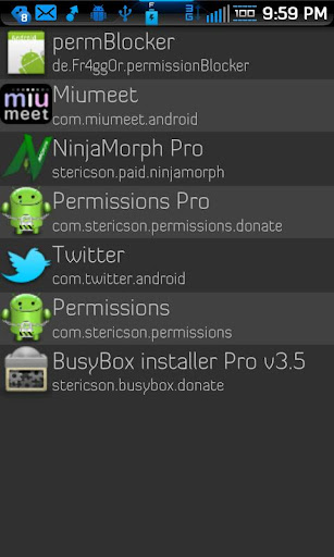 | Name: Permissions Denied Pro Entwickler: Stephen (Stericson) Preis: Größe: 638k | Version: 2.9.1 minimale Android Version: 1.6 oder höher Kategorie: Tools Download: Look at the bottom of the page |