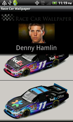 Greetings race fans! Race Car wallpaper was designed for race enthusiasts that want to add a touch of their favorite driver to their phone. Keep up to date with news about your drivers current Rank, Points and car styles. This Android app currently supports the following drivers: A.J. Allmendinger, Marcos Ambrose, Trevor Bayne, Greg Biffle, Clint Boyer, Jeff Burton, Kurt Busch, Kyle Busch, Dale Earnhardt Jr., Carl Edwards, Jeff Gordon, Denny Hamlin, Kevin Harvick, Jimmie Johnson, Kasey, Kahne, Matt Kenseth, Brad Keselowski, Joey Logano, Mark Martin, Jamie McMurray, Paul Menard, Juan Pablo Montoya, Ryan Newman, David Ragan, David Reutimann, Tony Stewart, Martin Truex Jr. and Brian Vickers from the NASCAR Sprint Cup Series. Other drivers will be added soon so check back if your favorite driver is not here.