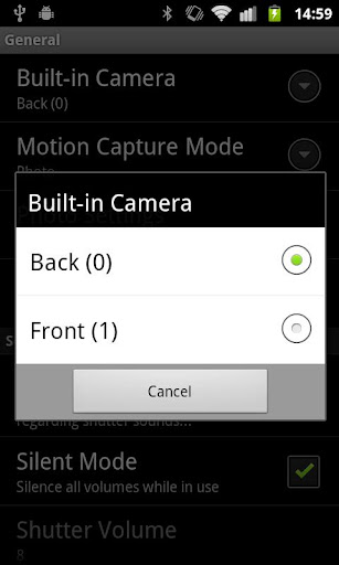 6. Choose between the front and back camera (requires Android 2.3 or above and a front camera);