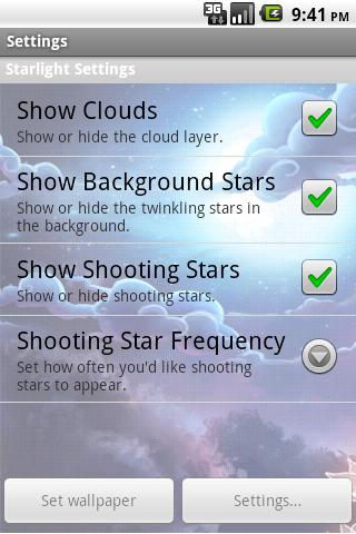 | Name: Starlight Live Wallpaper Entwickler: Jason Allen Preis: Größe: 3,7M | Version: 2.6 minimale Android Version: 2.1 oder höher Kategorie: Personalisierung Download: Look at the bottom of the page |