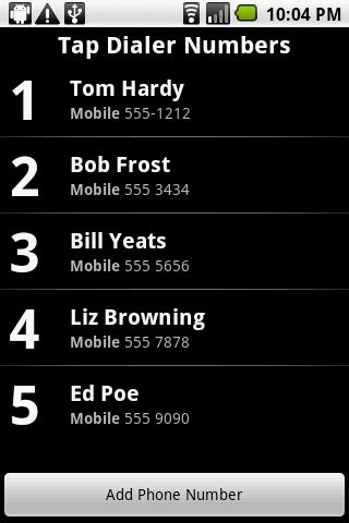 Dial your phone without stopping to look at the screen with this Speed Dial App! Set up a list of your favorite contacts, open Tap Dialer, then simply tap anywhere on the screen to dial. One tap for the first number, two taps for the second, etc. When you reach the number you want, just stop tapping and the number is dialed.