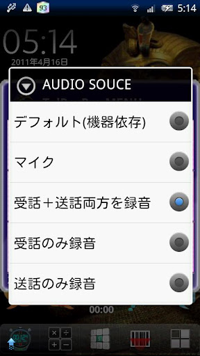 ●AUDIO SOUCER:デフォルト、マイク、受話+送話などの録音対象の設定