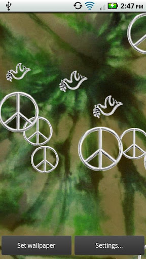 - Custom Live wallpaper featuring beautiful peace flowers (daisies), peace sigs, and peace doves dancing across your screen with an elegant Tie Dye backdrop. Adjust the number of flowers you see, turn sparkles and glitter on/off, change the direction, the background (5 to choose from), and even use YOUR OWN wallpaper under the flowers or peace symbols!