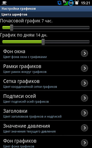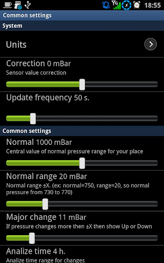 - Einstellungen für Hoch- und Tiefdruck, bedeutende Änderungen des Luftdrucks und für Basiswerte