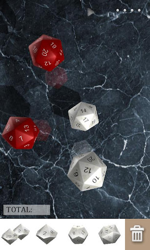 - shake the phone or tap the screen to roll the dice, or flick the dice individually
