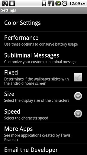- Subliminal messages with custom text, color, size and speed