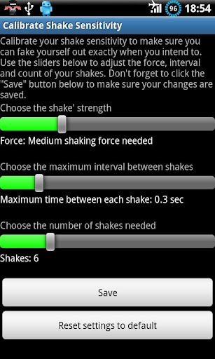 * Shake calibration to adjust the sensitivity to your needs