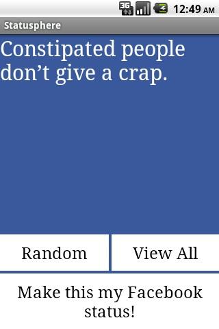 | Name: Statusphere for Facebook Entwickler: Eden-Maz Preis: Größe: 679k | Version: 1.2 minimale Android Version: 2.2 oder höher Kategorie: Soziale Netzwerke Download: Look at the bottom of the page |