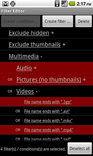 • Powerful filtering features (by file type, size, etc).