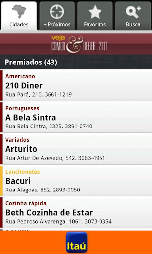 - Busca de estabelecimentos através de filtros como “premiados”, ”localidade” e “especialidade”, além de “mais próximos”.